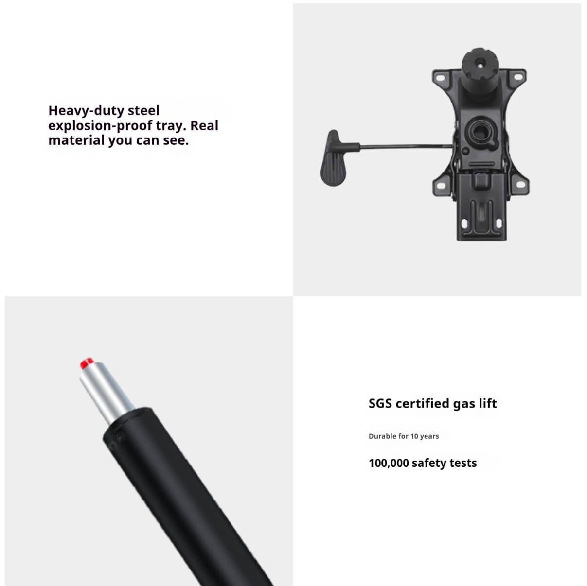 | Adjustments | Seat Height, Tilt Tension, 360° Swivel |